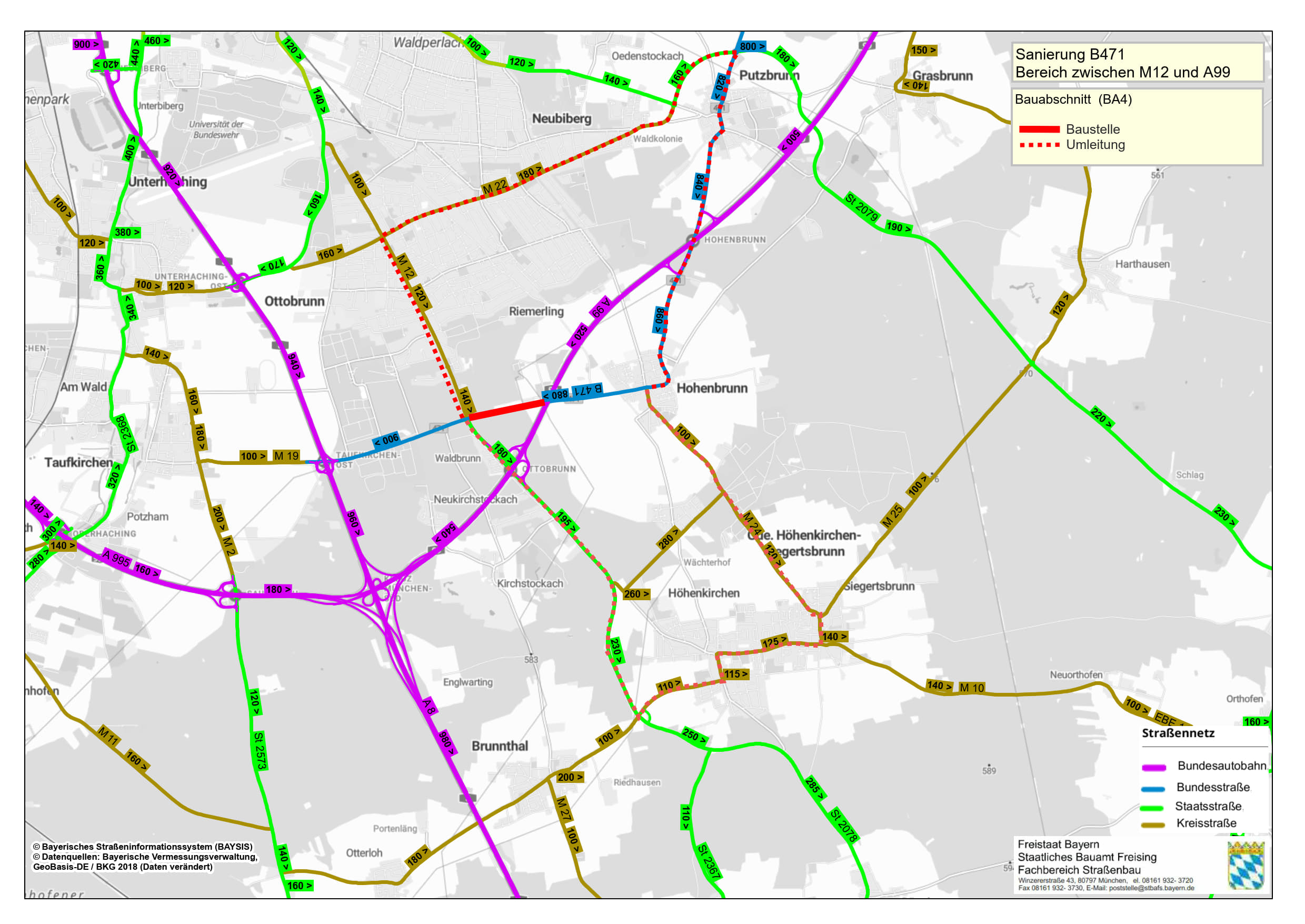 Während der letzten Bauphase 4 wird die B 471 zwischen der Rosenheimer Landstraße und der Brücke über die A 99 westlich von Hohenbrunn saniert. Zusätzlich wird der parallel verlaufende Geh- und Radweg in diesem Bauabschnitt erneuert und die Arbeiten an den Parkplätzen fertiggestellt. Für diese Arbeiten wird die B 471 zwischen der Rosenheimer Landstraße und der Einmündung der Hohenbrunner Straße voll gesperrt. Der Geh- und Radweg entlang der B 471 in diesem Streckenabschnitt bleibt weiterhin gesperrt und wird wie bisher in nördlicher Richtung über Ottobrunn/Riemerling umgeleitet.